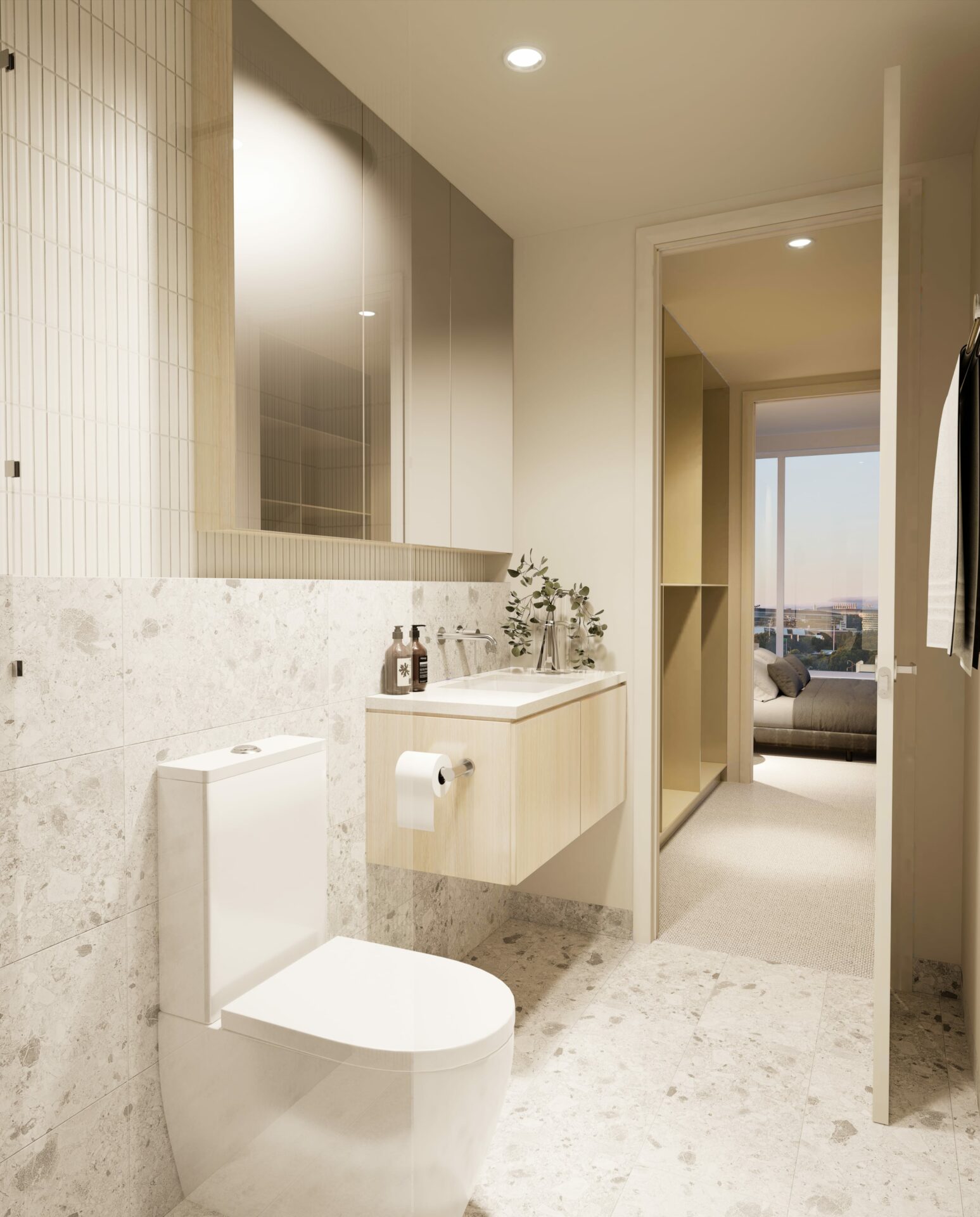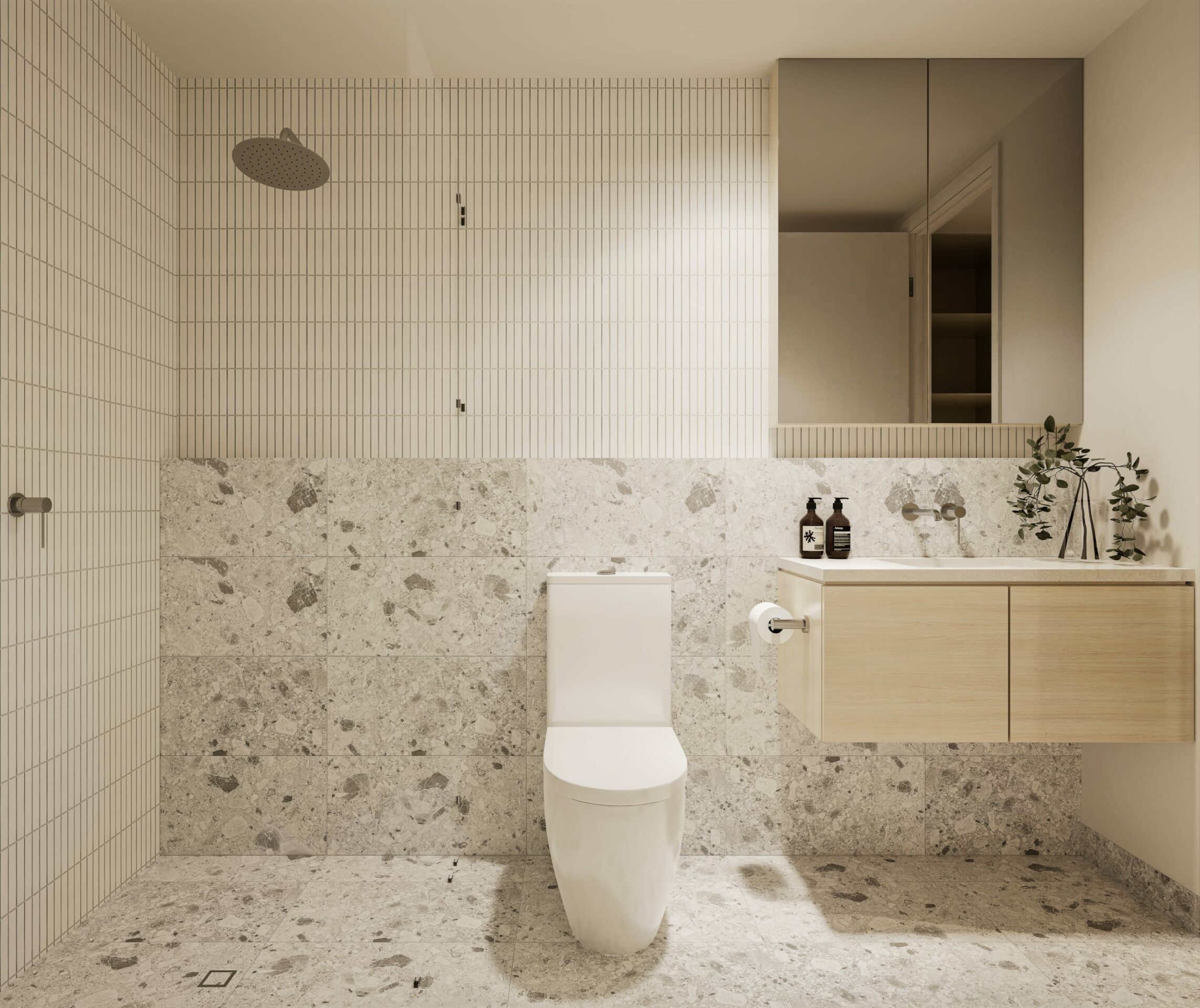 Treno offers a blend of urban and suburban lifestyles. This mixed-use development has both apartments and townhouses, balancing modern conveniences with the charm of Mile End. A highlight of the design by Studio Nine Architects is the communal rooftop terrace with city views.